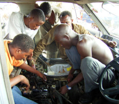 | テクニカルトレーニングセンター <自動車整備工場とミシン教室> 政府関係、またミコノの所有する車両の修理を主にしている。 授業料を徴収し、生徒に教えている。 授業料は格安のようだ。 無料だったら、ちゃんと勉強しないかもしれない。 ミシン教室。 いまは3人だけだ。 お金がなく布地が買えないので型紙を縫っている。 ミコノの、このあたりの資金援助はどうなっているのかわからない。 自分たちでなんとかするようにしている、とは思う。 「困っているのだったらそれくらいは出せばいいじゃないか」と思う人もいるだろうが、一概にそうとは言えない。 「豊かな者は貧しい者に手を差し伸べる」という考え方がアフリカにはある。 一理あるのだけれど、そこから「貧しいのだから与えられて当然」という心も生まれてくる。 アフリカには先進諸国からの多額な援助、借金がある。 「先進諸国はお金があるのだから、貧しいアフリカに手を差し伸べて当然」という援助慣れがある。 もちろん、ヨーロッパ諸国や米国がアフリカを好き放題かき回した、という歴史はあるし、いまだにそこから脱け出せ得ない現実があるのだけれど。 アフリカの人は恩義を感じるという感覚が希薄だ。 日本人のように彼らは考えないし、善意に感謝はしてもその時だけだ。 しかし彼らには、自分より困っている人がいれば、たとえそれが初めて遇った人だったとしても、たとえわずかな食べ物しか持っていなかったとしても、喜んで差し出すやさしさがある。 お互いの持っている価値観のズレゆえ、救援活動はむずかしいし、時間もかかる。 |