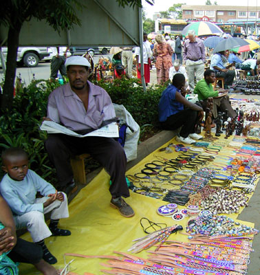 | ハーリンガム 「ミコノ」の事務所(というか所長の自宅というか)は街の西側、町の中心から車で15分くらいのところにある。 46番の市バス・マタトゥに乗ると行ける。 このあたりは静かな住宅街だったのだけれど、最近はカジノや日本料理、エチオピア料理のレストランなどができ、とても便利になっている。 焼肉屋の「カティカティ」もそうだ。 ヤヤセンターという、大きなショッピングセンターもある。 ヤヤセンターはσ(o^_^o)が帰国する直前にオープンしたところで、ケニア初のエスカレーターを設置した建物なのだった。 あのころはテナントもほとんど入っていず閑散としていたが、今はかなり賑やかになっている。 ヤヤセンターの物価は、他と比べるとやや高いがそのぶん治安がよく、大金を所持していても安心して歩ける。 銀行も入っているから、べつだん大金持って歩く必要もないのだが。 日曜日になると、駐車場の一角に露天市が開かれる。 マサイ族の派手なアクセサリーが売られている。 ながめて歩くのも楽しい。 値段は交渉しだい。 ま、その交渉というのがくせもので、けっこう時間がかかったりするんだけど。 おみやげ物を手軽に入手するにはよいんじゃなかろうか。 σ(o^_^o)は、ネッ友が「音楽CDをお土産に…」というので、ヤヤセンターにあるCDショップに行った。 ケニアの音楽、以前はちとダサかったのだけれど、このごろはとても洗練されている。 ラップは日本でも流行っているけれど、ヒップホップはやっぱり黒人の音楽だよね。 スワヒリ語のラップはなかなかツボにはまっていていいと思う。 TV番組も相当ひどかったが、今はとてもよくなっている。 なんでも南アフリカの影響らしい。 アパルトヘイトやめて国交ができたからなんだろうねえ。 |