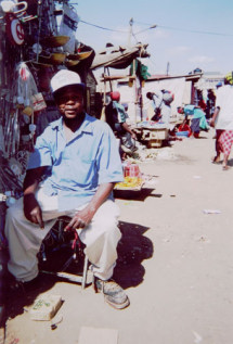 | カワングワレ 46番の市バス・マタトゥに乗り、終点がカワングワレ。 スラム街と言っていいだろう。 メインストリート?は建築関係の店が目に付く。 大工や家具職人が多いところだ。 これは、研ぎ屋さん。 包丁を研いでいるところ。 自転車を改造して砥石が回るようになっている。 以前と比べるとずいぶん家が増えている。 こぎれいなアパートも建っていたりする。 でも、相変わらず貧乏な人たちが大勢住んでいるところだ。 市場はとても賑やかだ。 1坪くらいの自分のスペースに野菜を並べて売っている。 おばちゃんたちは明るく、元気がいい。 ナイロビの街中と比べると物価はずいぶん安いようだ。 カワングワレは建築資材の買出しで来るばかりだったから、市場に入ったのははじめてである。 気持ちが和んでくるよい雰囲気。 なかなかよい。 電気の配線を売っているおじさんがいた。 日本のお祭りで露店が出るけれど、そんな感じである。 「写真撮っていい?」と訊くと。 「いいさ、撮ってくれ」と気さくにこたえてくれた。 カワングワレも、旅行者はこない。 昼はよいけれど、夜は危ない場所だ。 道ばたで子どもたちがマンゴを売っていた。 写真を撮ったお礼にマンゴを買った。 貧しくても、子どもたちの目はキラキラしていた。 |