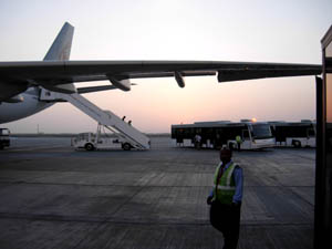 パソコン背負って 「エムカワさん、中古の安いパソコンあったら、持って来てくれません?」 ミコノ・インターナショナルからのメールだった。 ノートよりデスクトップの方が安いよなあ。 市内のマニアックなパソコン屋に行ったら、あった、あった。 スペック的にも十分だ。 でもさぁ、重いぢゃん! というわけで、σ(・_・)のバックパックに、段ボールで巻かれて入っている。 10キロ超だ。 家から駅までけっこう距離がある。 ベルトが肩に食い込むゾイ。 電車を乗り継ぎ、横浜から羽田へ。 羽田で換金しようとしたのだけれど、「こちら(搭乗ロビー)にはございません…」という返事だった。 到着ロビーのほうに行かないとないらしい。 「まあいいや、関空で換えるから」と思って今、関空。 搭乗手続きしようか、それとも換金か。 ちょっと迷ったが、まず換金することにする。 両替所まで行くと、なんと窓口を閉めるところだった。 午後10時半に閉店だという。 あと4分で換金できなくなるところだった~(=^‥^A アセアセ・・・ ケニアビザをナイロビ空港で取るつもりだったから、ドル紙幣がないと困るンである。 先に飛行機の手続きしてたら間に合わなかった。 こっちが先でよかった。 出国 出国手続きを終え搭乗ゲートまで来た。 ふと見ると、改札機の向こうにスーツケースがひとつある。 ( ̄~ ̄;)ウーン・・・ 似てるんだけど。 ほどなく放送が入った。 σ(・_・):「○○です」 係 官 :「チャッカマン、入ってますよね?」 σ(・_・):「はい、頼まれたので入れたんですが…」 「ネットだと、北米線はダメだとありましたが、他は…」 係 官 :「それは手荷物の場合ですね」 「機内預かりは全面禁止になっております」 「手荷物も、喫煙用にライター1つだけという制限がございます」 「チャッカマンは、ライターとは認められませんので…」 σ(・_・):「そうなんですか…」 ~(=^‥^A アセアセ・・・ せっかく再充填できるタイプにしたのに。 もったいないけど仕方がない。 書類のいくつかにサインをした。 機内に入り席に着く。 ほぼ満員だ。 いよいよ離陸。 しかし、σ(・_・)のヨコの席はずらっと空いたままだった。 ラッキー\(^^\)(/^^)/チャチャチャ 横になって眠れる。 ドーハ ドーハ空港のターミナルビルは小さい。 免税店も多くはない。 飛行機への搭乗はシャトルバスで移動する。 しかし、敷地内では建物の拡張工事が進められている。 数年したら、空港はかなり変貌しているだろう。 セキュリティーチェックで、バックパックの中身を出せという。 Σ(− −ノ)ノ エェ!? 出すのタイヘンなんだよ、パソコンをダンボールで巻いて、キッチキチに入ってるんだから。 仕方なしに引っ張り出したら、「ダンボールから出せ」と言う。 テープを剥がさなければならないぢゃん。 ため息つきつき粘着力の強いテープを少しずつ剥いでいると、他の係官が来て、「こっちで見る」とべつのX線検査機に持っていった。 最初の係官が面白くない顔で、「それはコンピュータなんかじゃないぞ!」と叫んでいる。 しかし、「これはコンピュータだよ」とこっちの係官は通してくれた。 米国のテロ以来、どこでもきびしいよなあ。 通れたからいいけど。 ナイロビ、ジョモ・ケニアッタ空港 入管の係官、おばちゃん2人だった。 英語で質問してきたので、すかさず「スワヒリ語で言ってくれ」とσ(・_・) 英語でなら事務的に進めるんだろうけれど、スワヒリ語だったのでちょっと違った。 「日本から来たんだよね?」 「ネットで見たんだけど、母親が自分の子どもを食べたって?」 σ(・_・)、ku-la(食べる)と ku-ua(殺す)を聞き間違えたんだろうけど、しかしこれは、日本人として話題にしたくない。 「それは、たぶん…ウソだよ」 「だって、ネットのニュースで見たよ…」 そんな会話をしつつ、ハンコをポンと打って「行っていいよ」と係官。 大使館でビザを取得している人たちよりも早い、入国一番乗りだった。 ま、一番に通過しても荷物が出てこなければ意味ないんだけどね。 荷物を待っているあいだ、帰りの便が気になっていた。 ネットだと、空港にあるカタール航空のカウンターに行けばできるとあったので、係官をつかまえて訊いてみた。 「リコンファームしたいんですが、カタール航空はどこですか?」 「街にオフィスがある、心配ない」 街には行くし、ま、後でいいか。 税関 スーツケースを開けろという。 こちらは、着替えとインスタントラーメンくらいでたいした物は入っていない。 バックパックにはパソコンが入っているので、開けられずによかった、とホッとする。 じつは、ガリッサで知ったのだが、最近ケニアではパソコンがタックスフリーになっているということなのだった。 それならパソコン持込でもめることなんてないじゃん。 要らぬ心配をしていたのだ。 ロビーには「ミコノ」のO君が出迎えてくれた。 タクシーに荷物を載せて、空港からナイロビ市内へ向かう。 日本は梅雨だが、南半球にある
