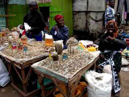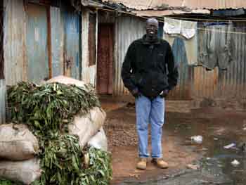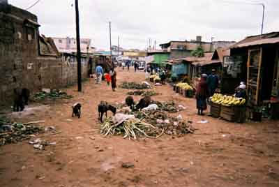 カワングワレ 今日は七夕だ。 南半球でも織姫と彦星は見えるだろうか…、なーんて、完全に忘れていた。 朝からカワングアレに来ている。 デジカメを持ってきている。 電子辞書もウエストポーチに入っているし、日本から持って来た携帯電話もポケットに入っている。 去年、ここの雰囲気を見て「大丈夫」と判断したからだ。 しかし、カワングワレでたくさん撮ったつもりでいたが、後で確認してみると、ほとんど撮影していなかった。 無意識に警戒していたんだろう。 ザカリヤ君、スーダン難民である。 肌の色も、顔つきも、ケニア人とは少し違う。 話し方が温和だ。 ヒョロっとして弱々しい感じがする。 10年ほど前、戦火を逃れてケニアにたどり着いたという。 「スーダンでは大学に行っていた」 「ケニアでは仕事がないんだ」 「ガリッサには2週間いた」 そんな話を聞きながら歩いた。 親類縁者が、ここには多く住んでいる。 彼と似たような顔つきの、つまりスーダン人とよくすれ違う。 というか、会うごとに挨拶をし、会話している。 「水、金曜日に市が開かれるんだ」とザカリヤ君。 市場は野菜や果物が山積みにされ、とても賑やかだった。 また、市場の横の通りには露天商が軒を連ねていて、人であふれていた。 「露天なのに軒はあるのか」なんてツッコミがありそう。 (゜゜;)\(--;)・・・ッテナンデヤネン! その通りの真ん中を一列になって、カバンやら果物やら品物を手に持って並んでいる人たちがある。 「あれは?」 「あの人たちは商品を売っている」とザカリヤ君。 買い物客ではなく、売っている。 店を出すスペースを持っていない人たちってことだ。 たくましく生きているなあ、と思う。 ザカリア君は、とある洋服屋に入っていく。 「あの服を見せて」 ずっと上のほうに吊ってあるジージャンを指差して言った。 「ちょっと小さいなあ、サイズはこれだけ?」 「これだけです」 「そっか、じゃいいや」 ザカリア君、たぶんサイズが合ったら買ったんじゃないかな。 ザカリア君、携帯電話を腰につけている。 「それ、使えるの?」 「もちろんさ」 ニヤッと笑って自慢げに持ち上げた。 「車の免許は?」 「持ってるよ」 「そうか」 路地を入っていくと、男が声をかけてきた。 「タンバコ、タンバコ」 茶色い粉を見せて勧めてきた。 鼻から吸い込むしぐさをしている。 タンバコ? 麻薬? 何人かまわりに集まって来た。 口々に「タンバコ、タンバコ」と言っている。 「シガラ?」と訊くと「ウン、ウン」と大きく頷いた。 tobacco、タバコは煙草でも、嗅ぎ煙草か。 スワヒリ語だとタバコのことをシガラ(sigara)というのだが、嗅ぎタバコはそのまま tobacco なんだ。 「いらない、タバコは嫌いなんだ」 そう断わって、路地を進んだ。 「カワングワレはドロボウが多い」とザカリア君。 「このへんにはいっぱい住んでいるよ」と近くのアパートに目をやった。 「危ないねえ」 「うん、危ない、アブナイ」 観光客ではなさそうな日本人がウロウロしている。 っていうか、観光客はゼッタイ来ないところなんだけど。 なぜか、スーダン人といっしょに歩いている。 カモがネギを背負ってるんである。 襲おうと思えばすぐにでもできるはずだが、さすがに自分たちの住居近くではやりにくいだろう。 彼の家に着いた。 トタン壁の長屋である。 窓はない。 四畳ほどの広さにシングルベッド、身の回りの品はカバン一つといったところだ。 「こっち、こっち」 「これは妹、これは母親」 彼の家の隣に二階建ての小さなアパートがあるのだが、そこに住んでいる家族を紹介された。 十二畳くらいの広さのリビングには5、6人の男たちがテレビを見ながら歓談していた。 スーダン人の溜まり場になっているようだ。 平日の昼間である。 この人たちにも、もちろんカワングワレですれ違った彼らにも仕事はない。 ザカリヤ君、車の運転免許がある、携帯電話も持っている、パソコンもある、大学にも行った。 しかし、「仕事がない」という。 彼は、いつか口にするであろうセリフを飲込み、こう言った。 「あしたも来てほしい」 翌日 朝、カワングワレへ向かった。 デジカメも電子辞書も携帯電話も財布も、それにパスポートもミコノ・オフィスに置いて。 ポケットにあるのはマタトゥ代とレンズ付フィルムだけだ。 昨日にぎやかだったマーケットも、今日は静かだ。 もちろん開いている店も多いのだが、昨日の活気とはうって変わって、みなヒマそうにしている。 ザカリヤ君の家に着くと、なんだかそわそわしている。 何人かで集まり話をしている。 シルバースプリング・ホテルに援助の期待できそうな人が来るらしい。 σ(・_・)がいるのに気がつくと、「じゃ、行こう」と歩き出した。 「土曜日は酔っ払いが多いんだ」とザカリア君。 なんて話をしていると、男がふらつきながら陽気に声をかけて来た。 「やあ、元気か? ○▲☆■%…」 酔っているのでなんだかしつこい。 こういうのはトラブルの元だ